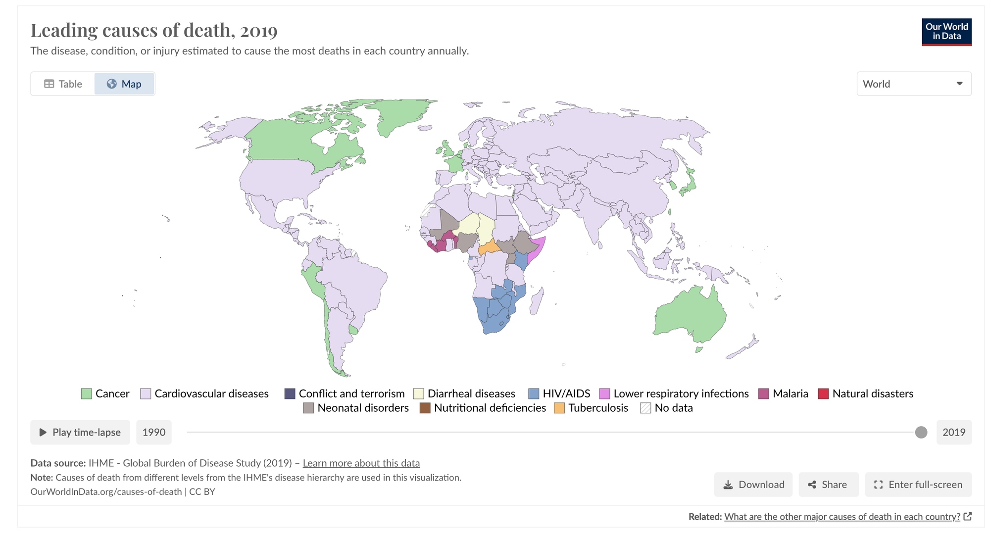 Looking at the global picture for mortality reveals interesting differences, e.g., the substantial health burden of malaria in western Africa and HIV/AIDS in southern Africa.